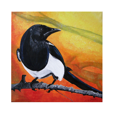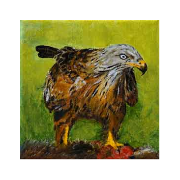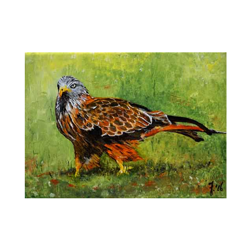 Prooivogels, ook vaak roofvogels genoemd, zijn meestal vleesetende vogels die op een prooi jagen. Dat doen ze op de grond, in de lucht of in het water. Ze hebben klauwen met scherpe nagels met drie tenen vooruit en één teen achteruit, en een grote kromme snavel. De meeste prooivogels jagen overdag. Maar er zijn ook nachtprooivogels: de uilen. Die heb ik nog niet geschilderd. De ekster is een echte een echte rover (niet van alles wat blinkt, dat is een fabeltje). De ijsvogel is de kleinste van de vogels die ik geschilderd heb.