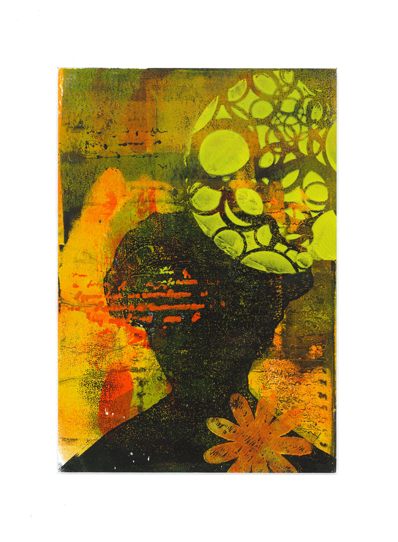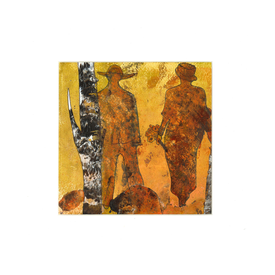 ALS EEN VIS IN HET WATER. Bewerkte print op papier 30x33 cm. € 25,-
